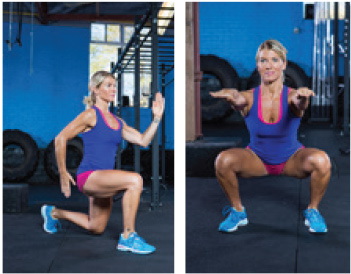 Perform 10 Deep Squats, 20 Alternating Forward Lunges, 10 Deep Squat Jumps and 20 Alternating Lunge Jumps to equal 60 reps. Move as quickly as you can with a full range of motion. Rest 30 seconds and move on to the next exercise.
