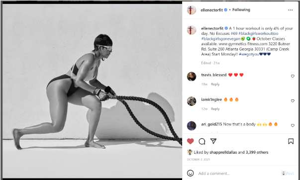 Why you should follow her: This plant-based fitness pro inspires her 177,000 followers with encouraging posts for your workouts. You’ll find snippets of the workouts she leads in Atlanta and even if you can’t attend them, they look so challenging and fun, you may just be inspired to join a similar class in your area. Ellen also shares a peek into her own active lifestyle, which range from sessions at an indoor climbing gym to roller skating at a rink.