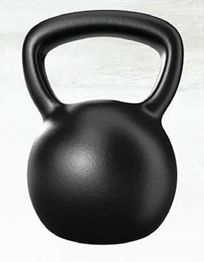 LIKE THIS … Stand with your feet wider than shoulder-width apart, holding a kettlebell with both arms extended toward the floor. Bend your knees slightly and lean forward from your hips, moving the kettlebell between your legs. Explosively extend your knees and hips to come upright, allowing the momentum to swing the kettlebell to shoulder level. Let it fall back to the start, bend your knees, and immediately move into your next rep. Repeat 10 to 15 times.