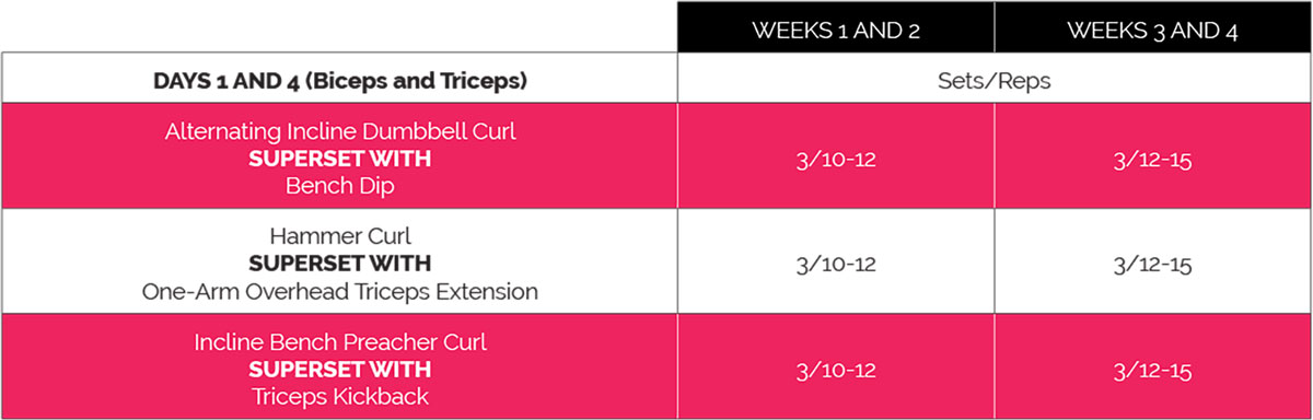 Though squats may take centre stage in your program, your arms are the real secret weapon to looking great in everything you wear. This workout will give you results in under a month – we promise!