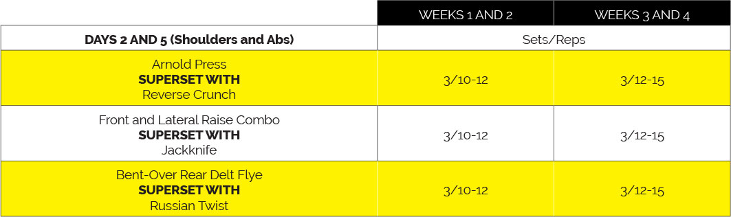 Do this upper-body blast four times per week as prescribed, and it will leave you feeling strong and sexy in just four weeks. Allow your body to recuperate at least 24 hours between workout days, and if you want even better (and faster) results, pair this up with a healthy nutrition plan.